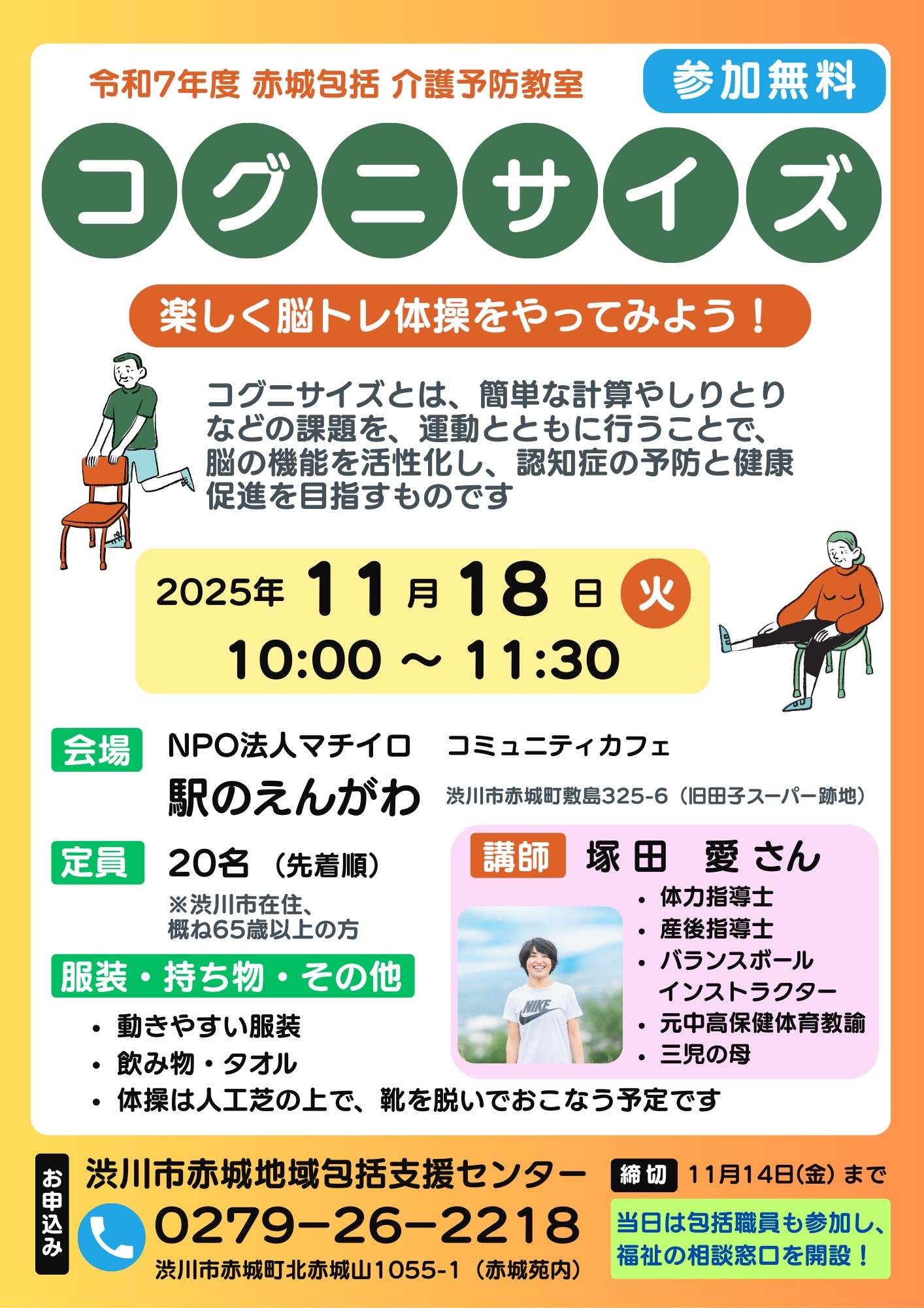令和7年11月18日(火)「介護予防教室:コグニサイズ~楽しく脳トレ体操をやってみよう~」を開催します